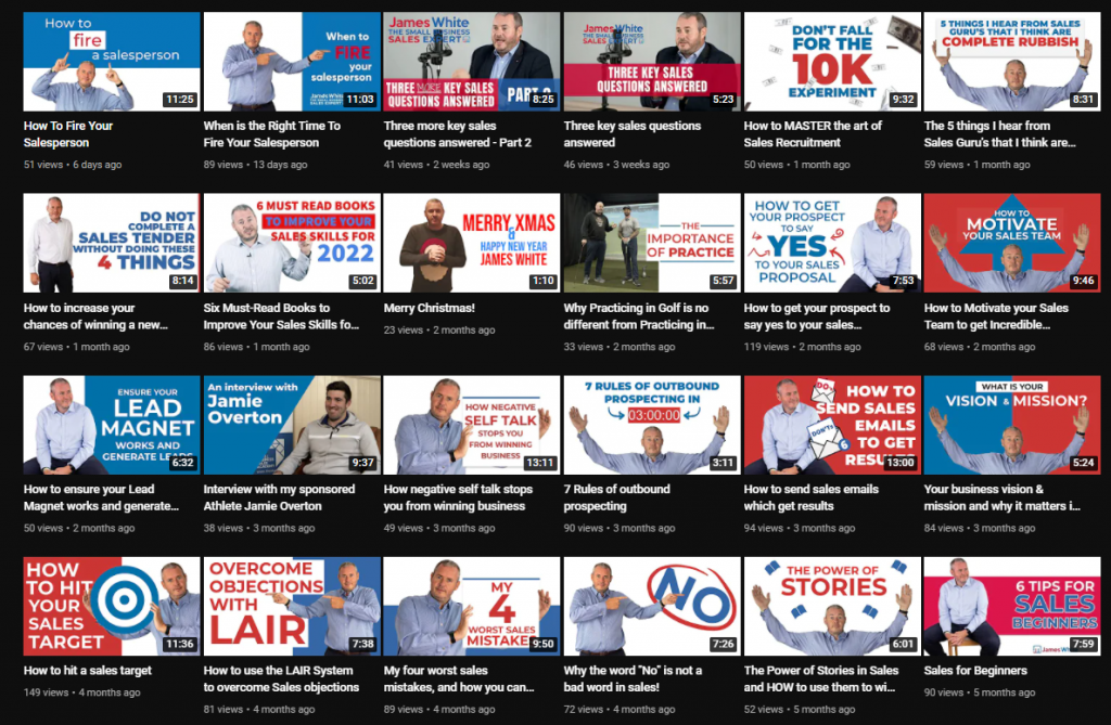 You can get in touch on email via james@thesbsa.com or through any of the social networks: Twitter, Facebook, Instagram or YouTube – search for ‘@jameswhitesales’.